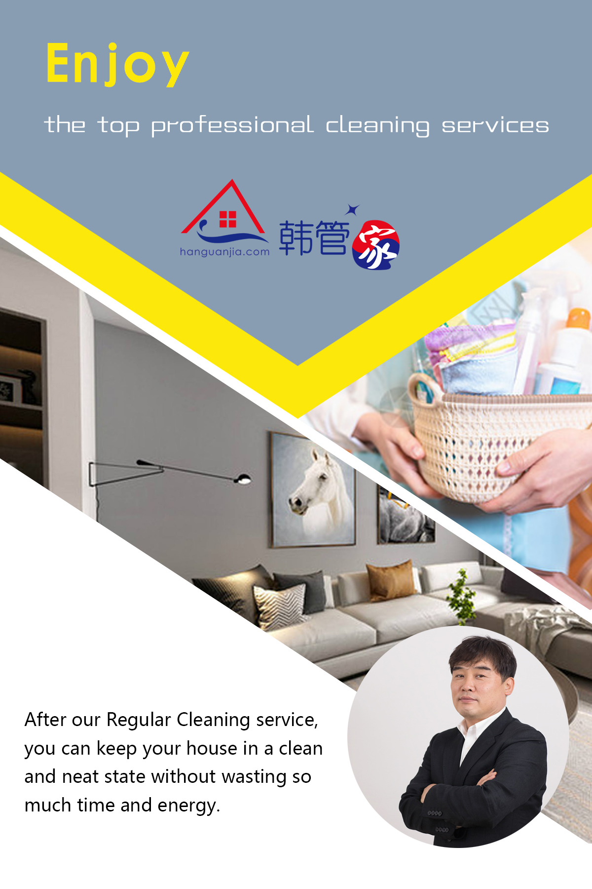 韩管家 真的打扫的非常干净 而且他们家有个蒸汽消毒地板 的真心nice 我们家有两只小狗狗 正好就是需要这种可以消消毒的东西 强烈推荐